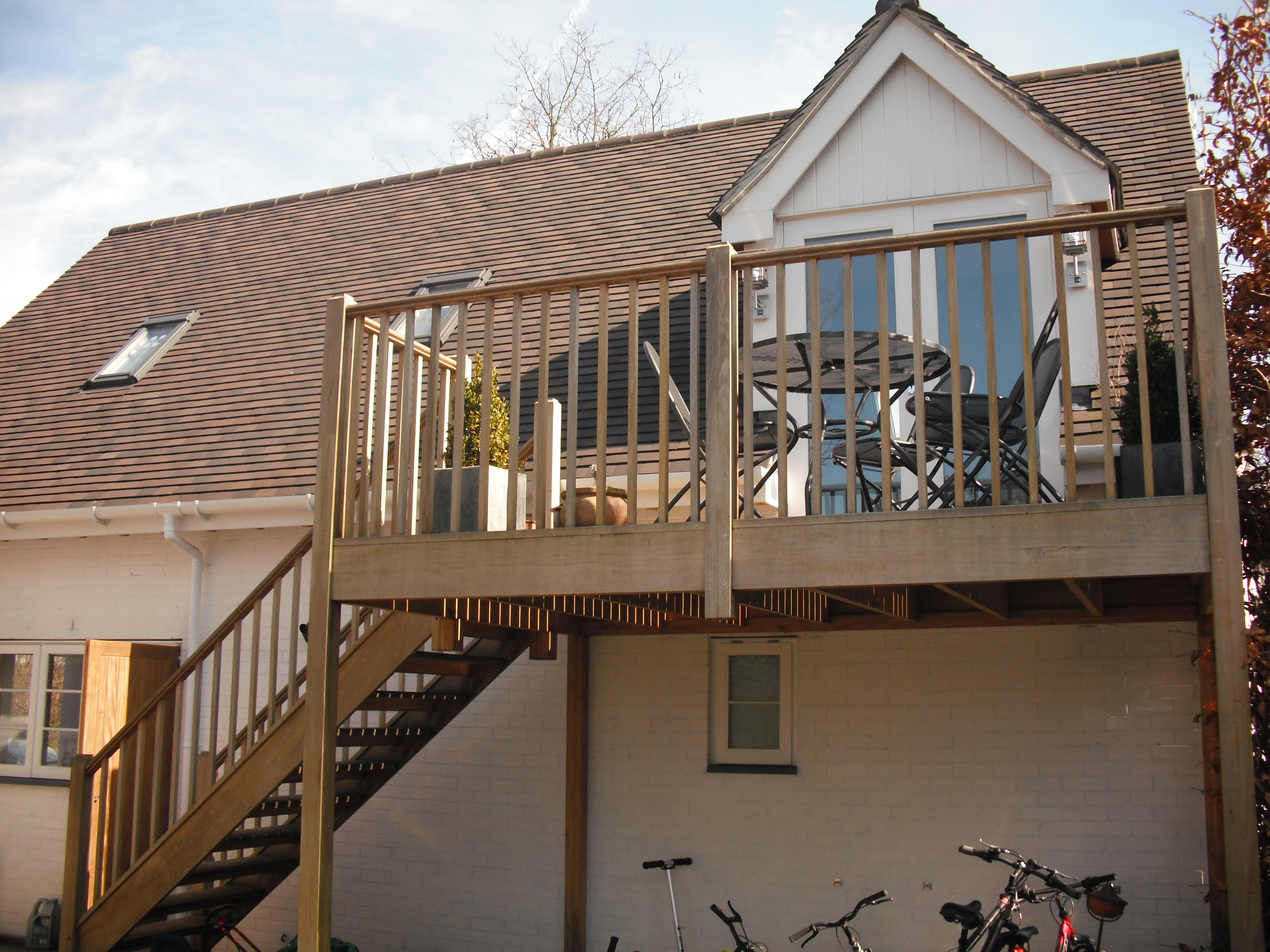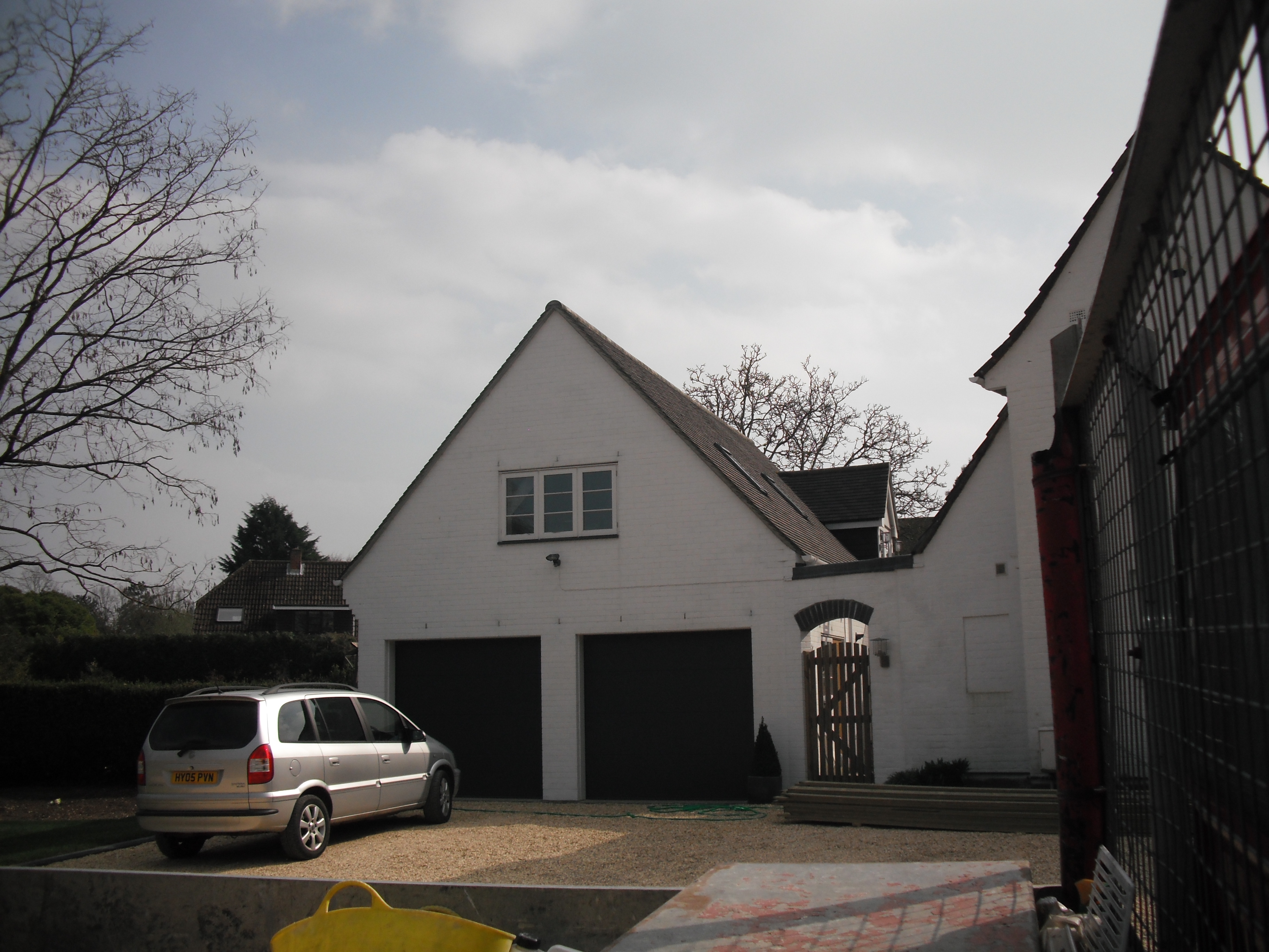 Once again we were recommended by a previous client to construct a double garage, workshop, kitchenette and shower room at ground level with a staircase that leads to a playroom with a balcony all to the side of the existing property.